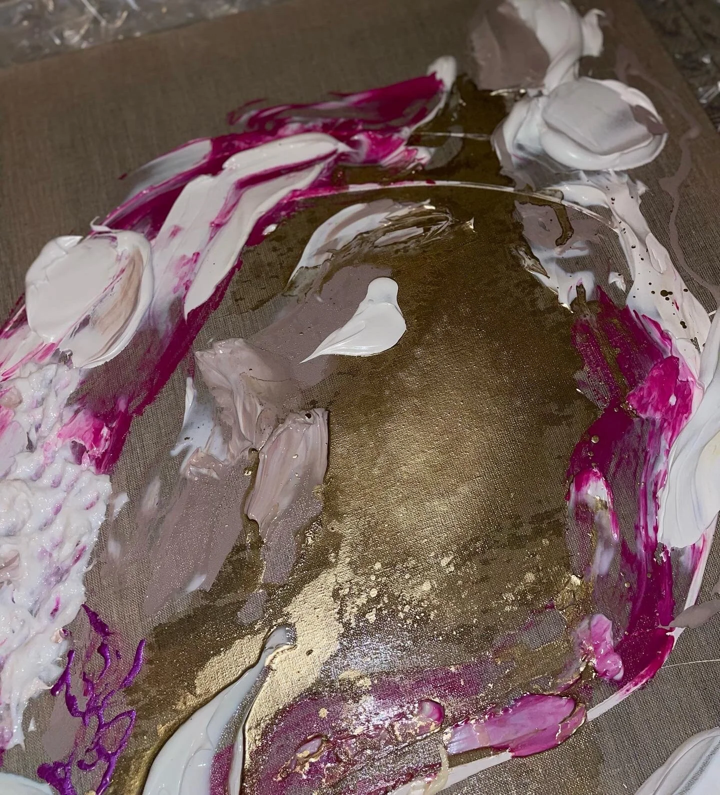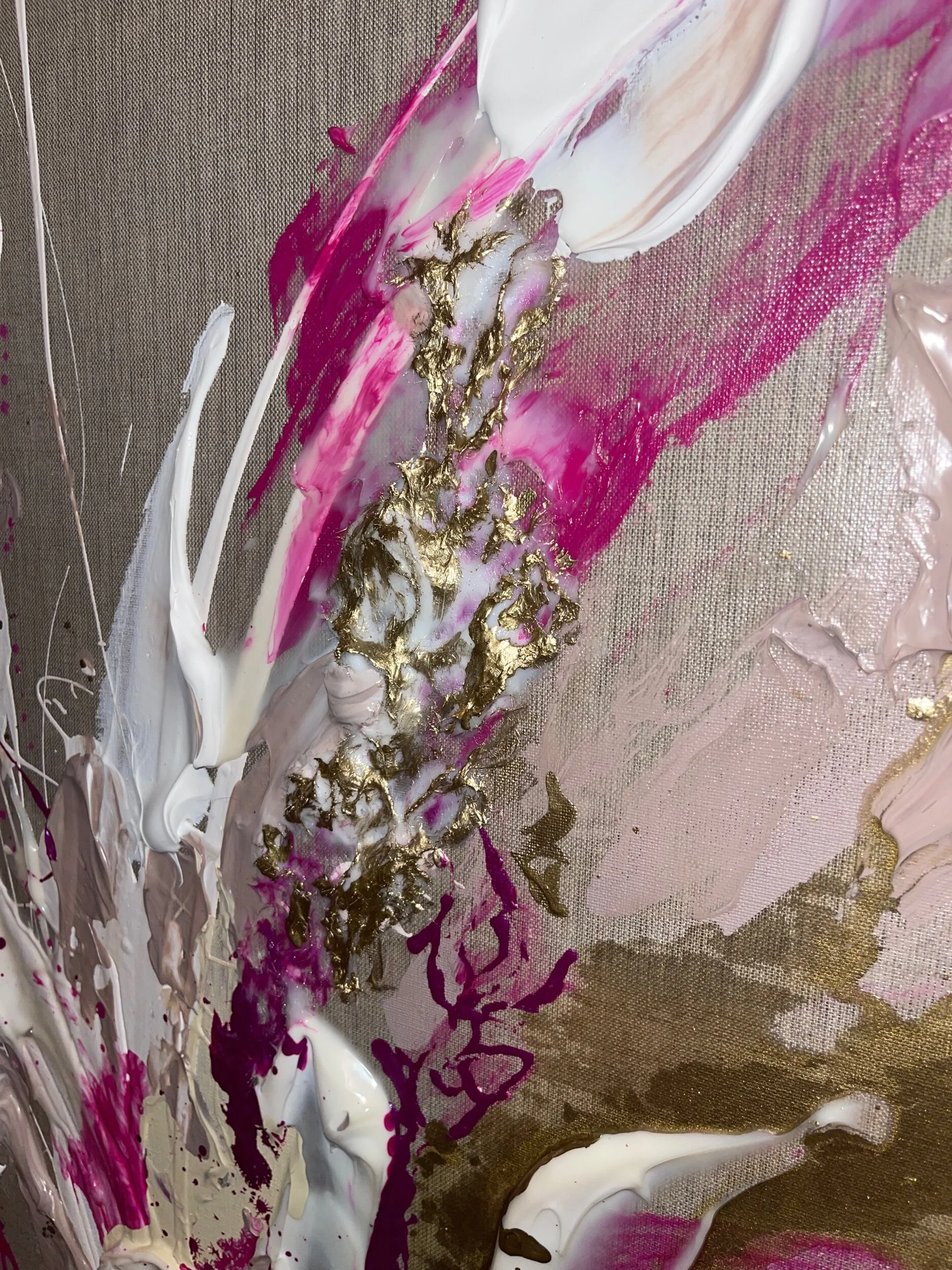 Acryl, Sand, Strukturpaste, Strukturgel, Tinte, Kreide und Lack auf Leinwand